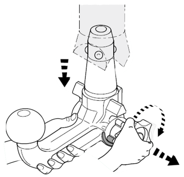 Wird die abnehmbare Kugelstange über einen längeren Zeitraum nicht benutzt, sollte zur Entlastung der Federelement der Verriegelungsmechanismus stets entspannt (verriegelte Stellung) sein. Entspannen siehe "Montage der Kugelstange"